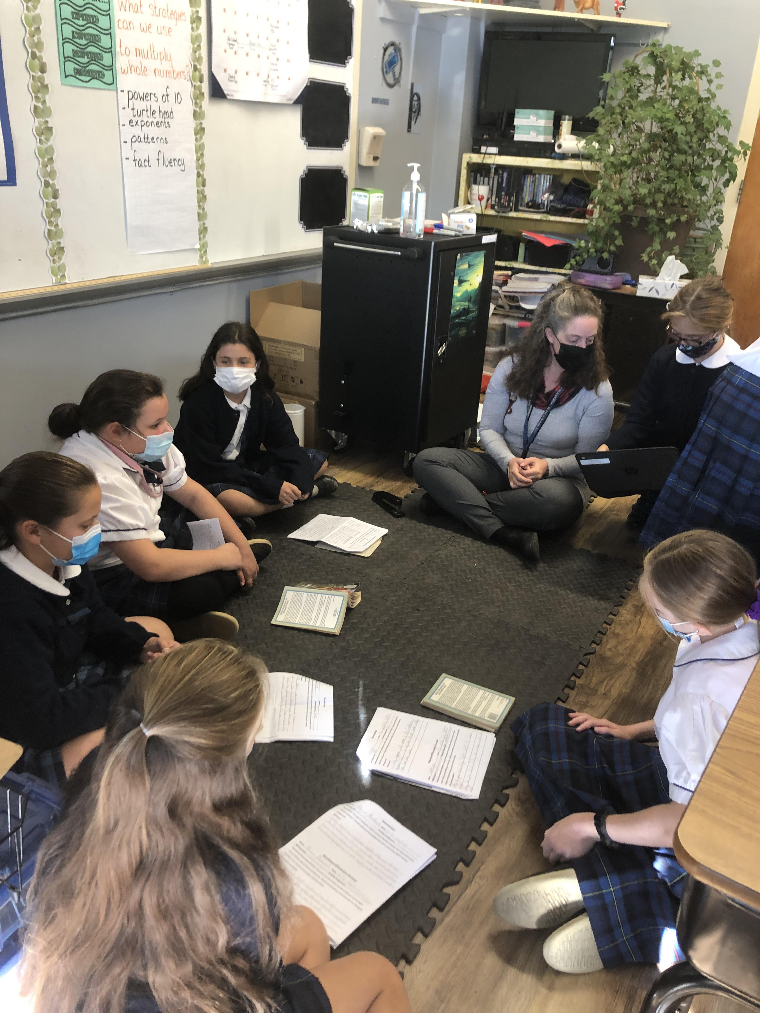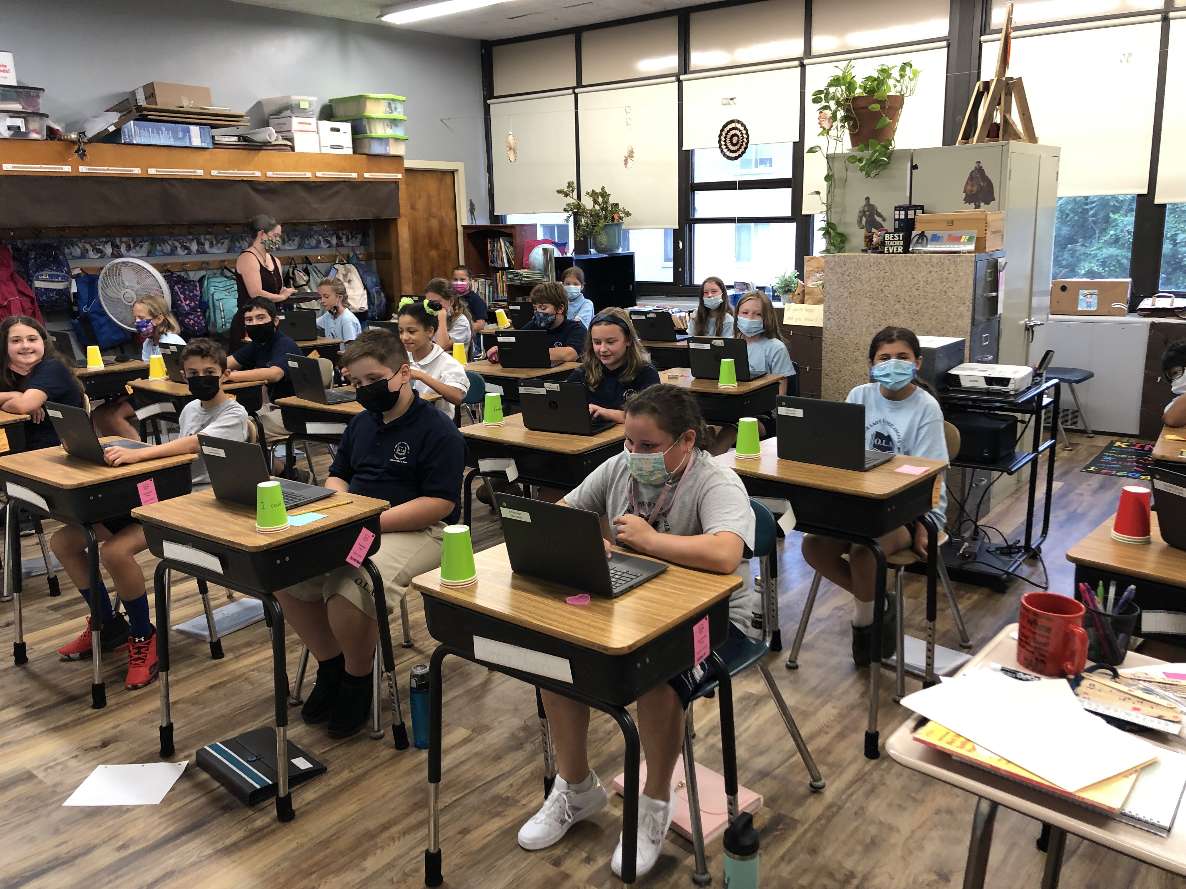 | The fifth grade works with Jeremiah’s Inn, a local homeless shelter and food pantry, to collect food, clothes, and other needed items. The director of Jeremiah’s helps them learn about the homeless situation on the local and national level via class discussion and recommended literature. |