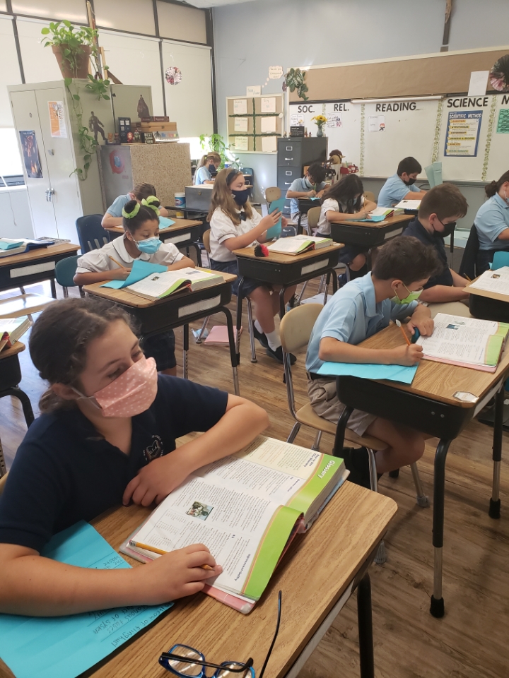 In Reading, fifth graders read stories from many genres to increase their appreciation and ability to analyze different kinds of nonfiction and fiction. They work with weekly spelling and vocabulary lists in the context of these stories, and also practice key reading skills like finding the main idea, identifying plot elements, and analyzing story characters. |