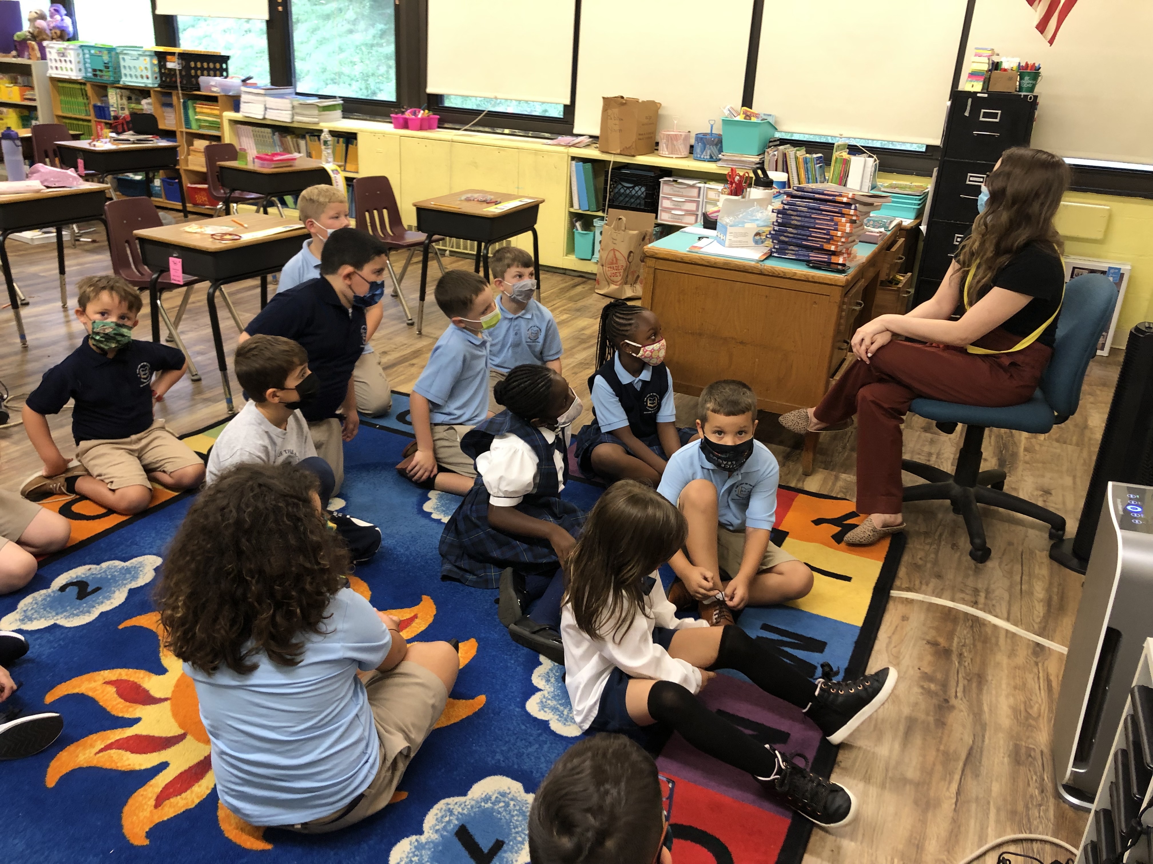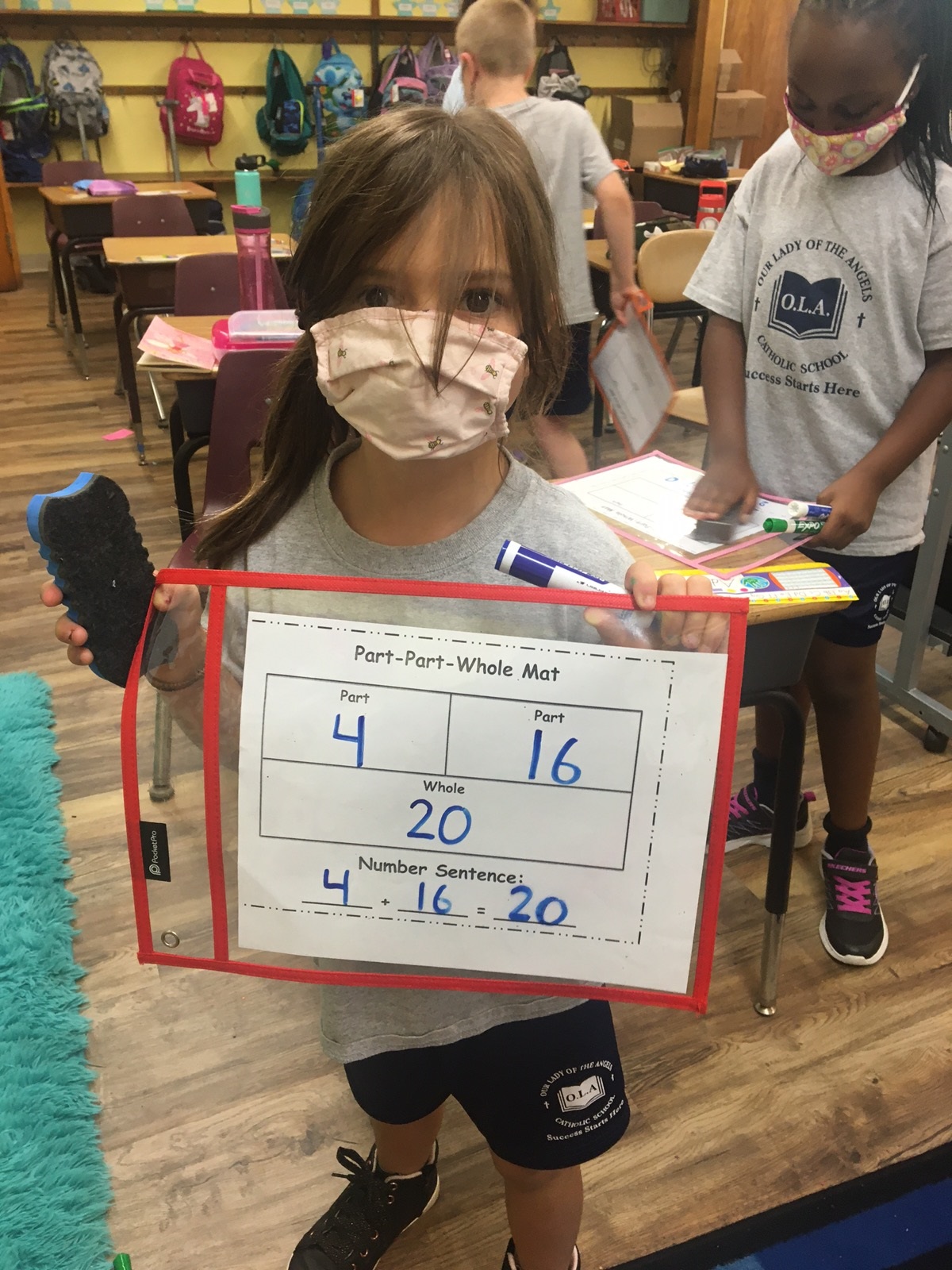 In Math, hands on activities and manipulatives are used daily to develop and practice skills. Place value, time, money, two digit addition and subtraction, measurement, and fractions are some of the skills covered. Problem solving enhances critical thinking skills. |